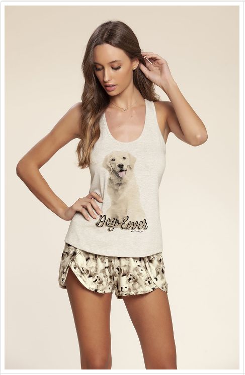 Pijama shortdoll com blusa nadador com estamapa de cachorro, quem ama animais vai adorar!
