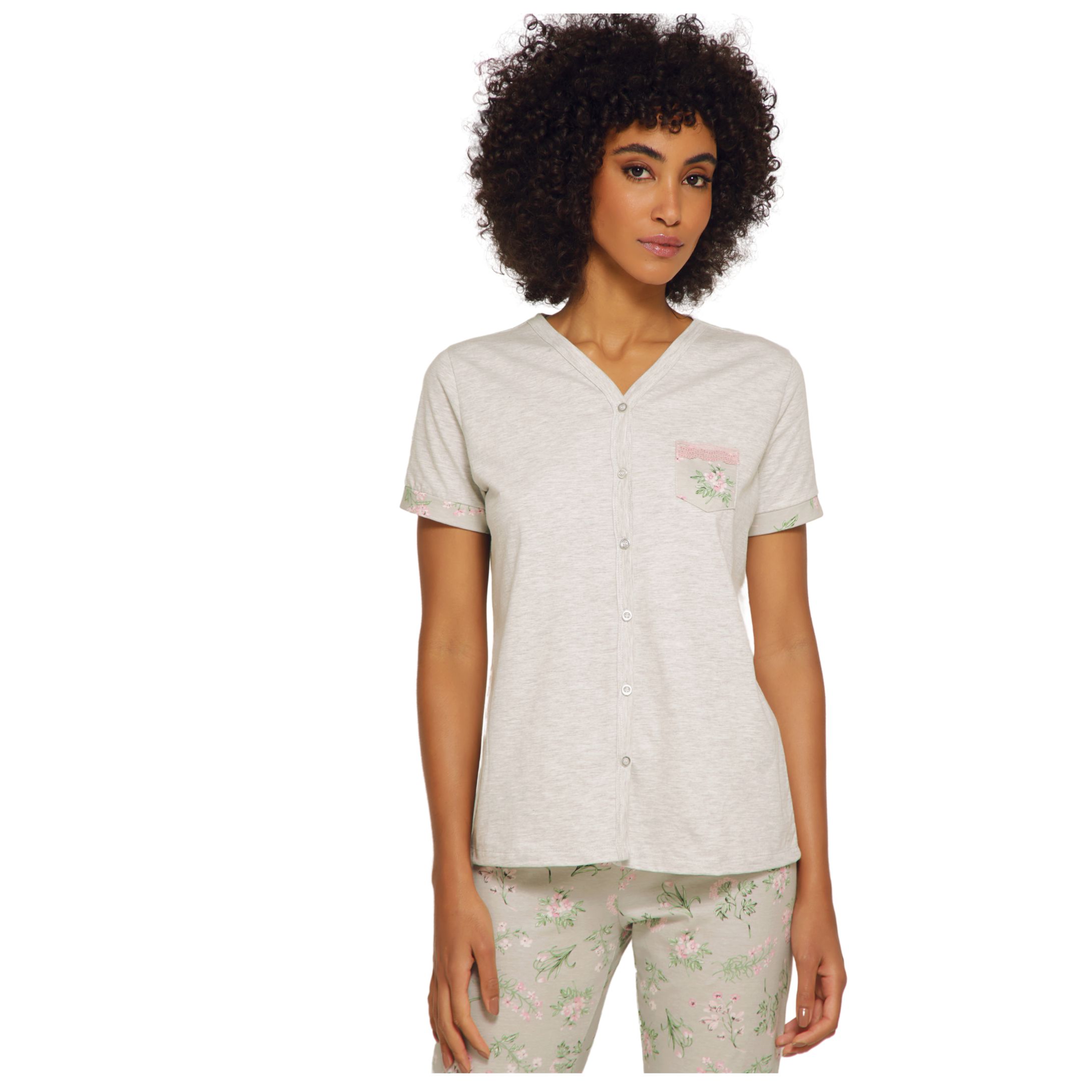 Esse pijama em malha é tuo de bom, sua estampa discreta no cinza mescla, compõe um look de tranquilidade, ideal para uma noite de sono. Sua blusa com abertura e botões da praticidade a peça, principalmente para quem está amamentando.