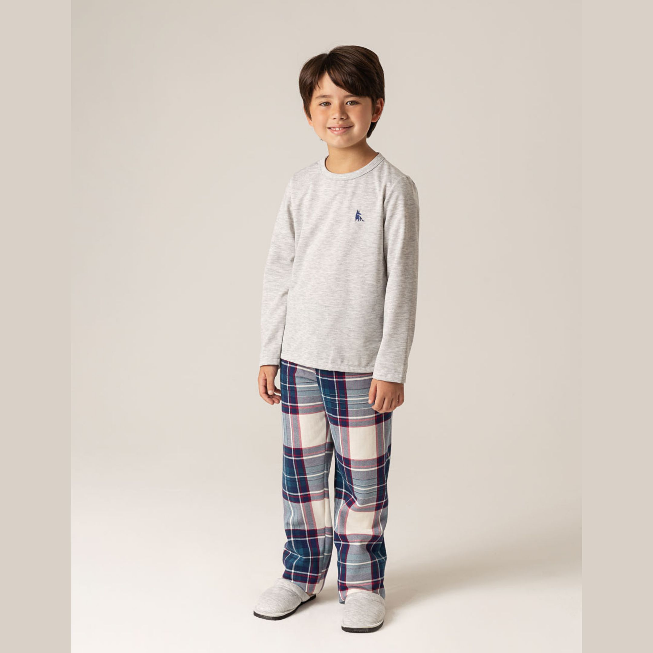 Esse pijama quentinho de moletinho flanelado, com sua blusa mescla e a calça xadrez é um charme, os jovens vão amar!
